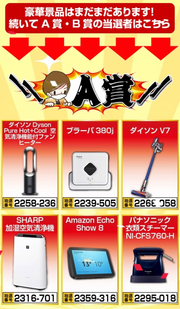 それにしても、豪華景品の数々。。 当てた方気になりますね。